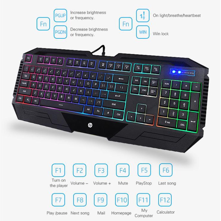 BÀN PHÍM + CHUỘT HP GK 1100 ĐEN LED USBĐộ phân giải : 800-1200-1600-2400 DPI