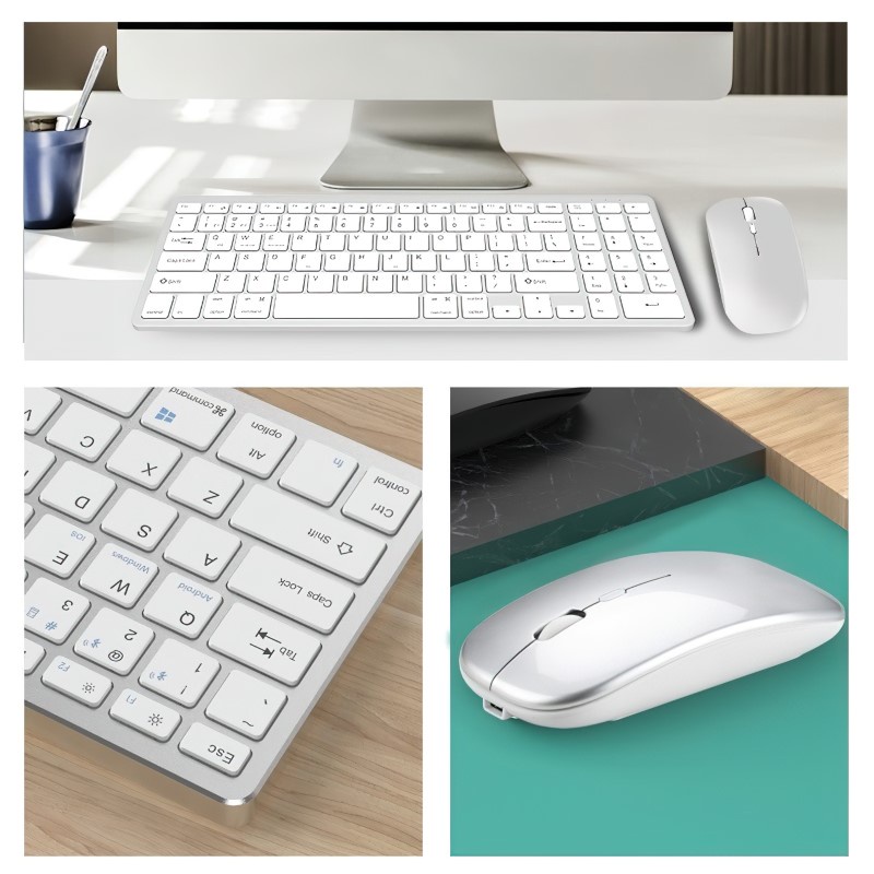 Bộ Bàn phím Chuột không dây mini WLK619 - pin sạc - đa kết nối bluetooth 5.0 + 3.0 + Usb wireless 2.4G