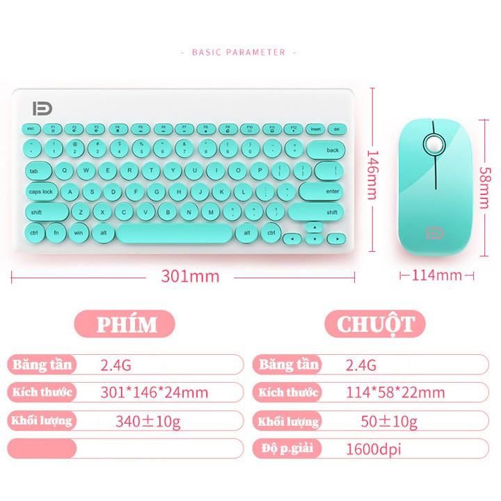 Bộ bàn phím chuột không dây nhỏ gọn SzForter FD iK6620 PC09