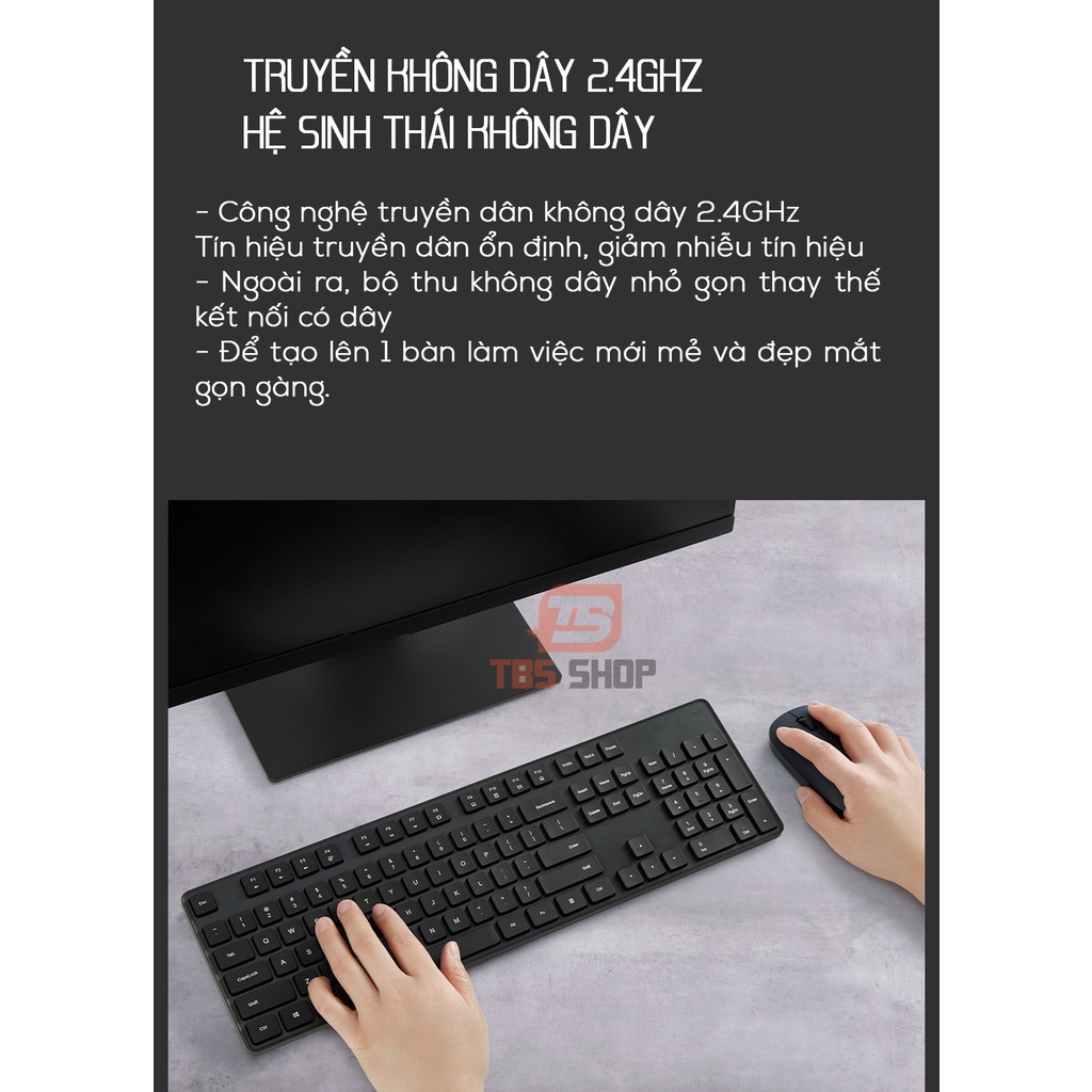 Bộ bàn phím chuột không dây Xiaomi hỗ trợ cả windows và macos.- Giới thiệu Bộ bàn phím chuột không dây Xiaomi