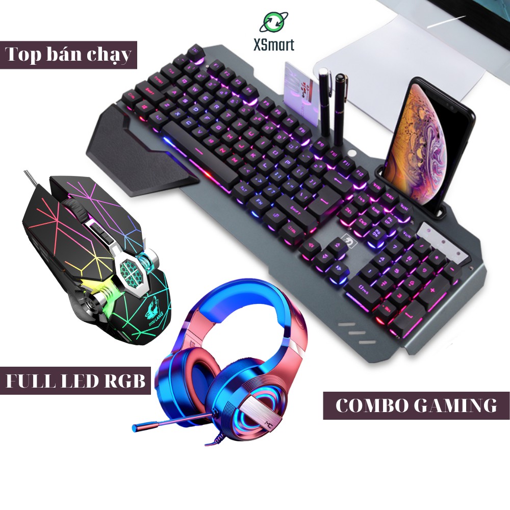 Bộ bàn phím chuột và tai nghe chụp tai, combo LED chế độ màu cực đẹp cho máy tính laptop pc k618+V8 tia sét+ Q9 7.1
