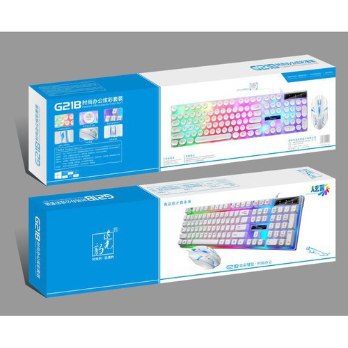Bộ bàn phím chuột G21B đáp ứng những điều kiện cơ bản đối với 1 người sử dụng. Bàn phím và chuột hoạt động ổn định, ít lỗi vặt, bền bỉ cho dù bạn không có vệ sinh quan tâm tới sản phẩm. Giá cả hợp lý khi bộ bàn phím chuột G21B này chỉ có giá dưới 130K phù hợp cho những ai không muốn đầu tư quá nhiều vào bàn phím chuột.Thông số kỹ thuật chi tiết Bàn phím G21B+ Vật liệu: Nhựa ABS, khắc chữ laser chống mờ.+ Bàn phím có đèn LED nền giúp việc sử dụng phím buổi tối hoặc ban đêm trở nên dễ dàng hơn.+ Tính năng antighost nhận tối đa 19 phím 1 lần bấm.+ Chất lượng vỏ cứng cáp, chắc chắn+ Màu sắc: Trắng, Đen.+ Kết nối: có dây qua cổng USB 2.0 và USB 3.0.+ Độ bền phím trên 10 triệu lượt bấm.