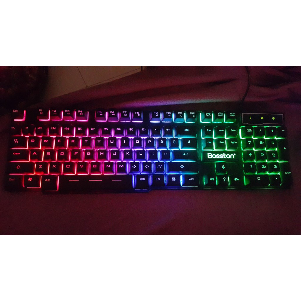 Giới thiệu sản phẩm Bàn phím giả cơ Bosston G803 Led 7 màuBàn phím led chuyên game giả cơ Bosston G803 với thiết kế tựa như 1 bàn phím cơ với đường nét và kiểu dáng rất phá cách, hệ thống đèn led 7 màu cực kỳ ấn tượng trãi đều trên mặt phím, giúp người dùng, đặc biệt là các game thủ có thể thoải mái sử dụng vào ban đêm.