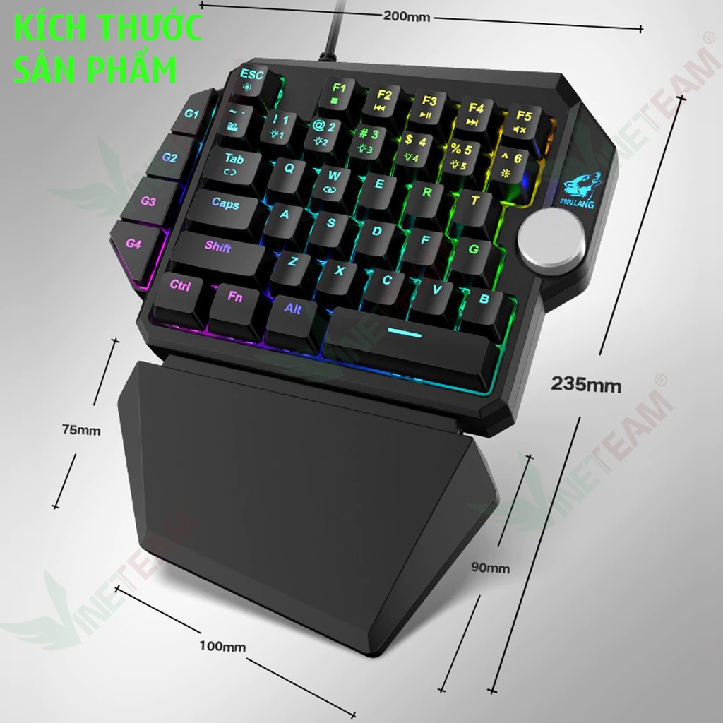 Bàn Phím Cơ 1 tay ZIYOULANG K5 39 Phím Hỗ Trợ MACRO Blue Switch RGB Chơi Game Pubg Mobile, Rules, Free Fire -dc4691
