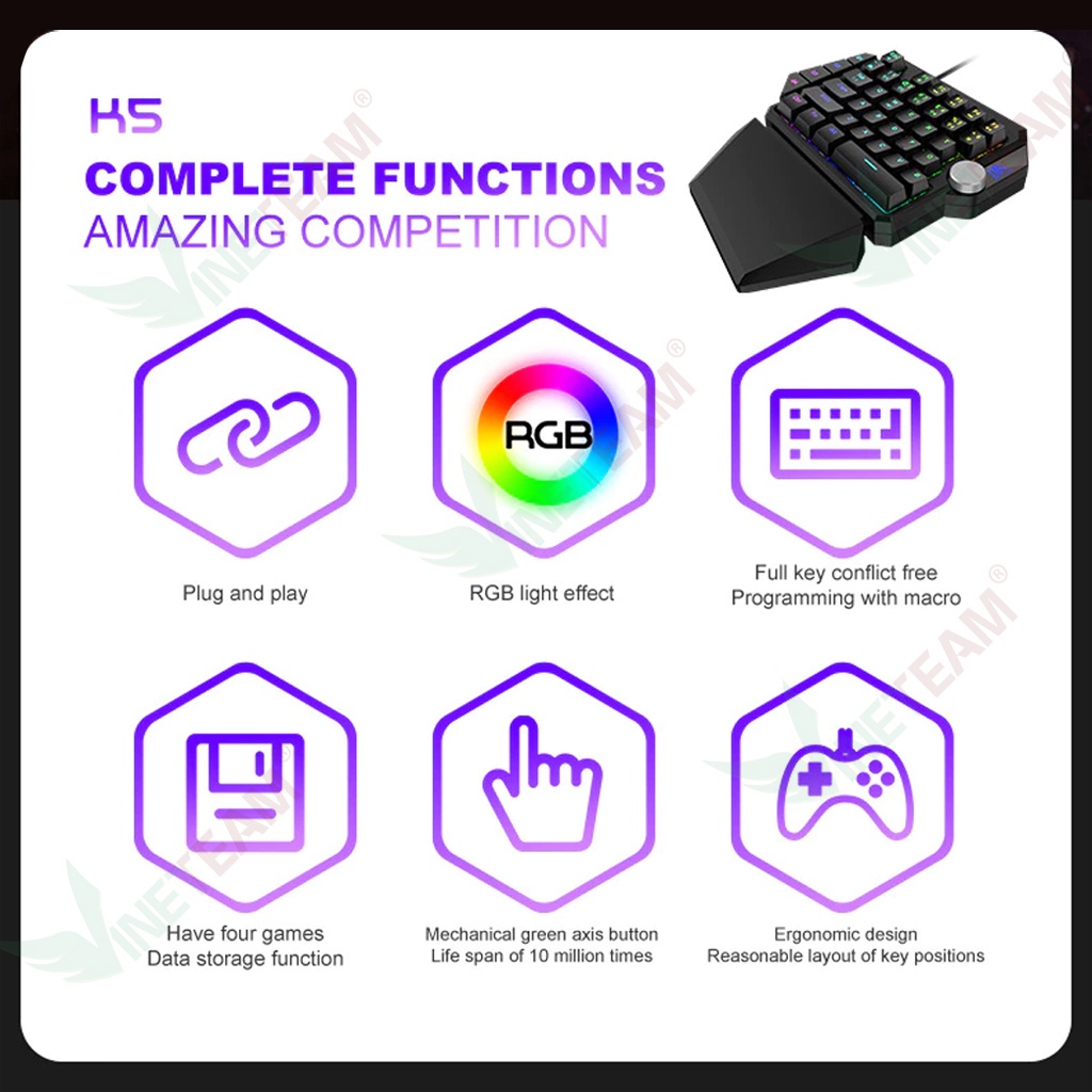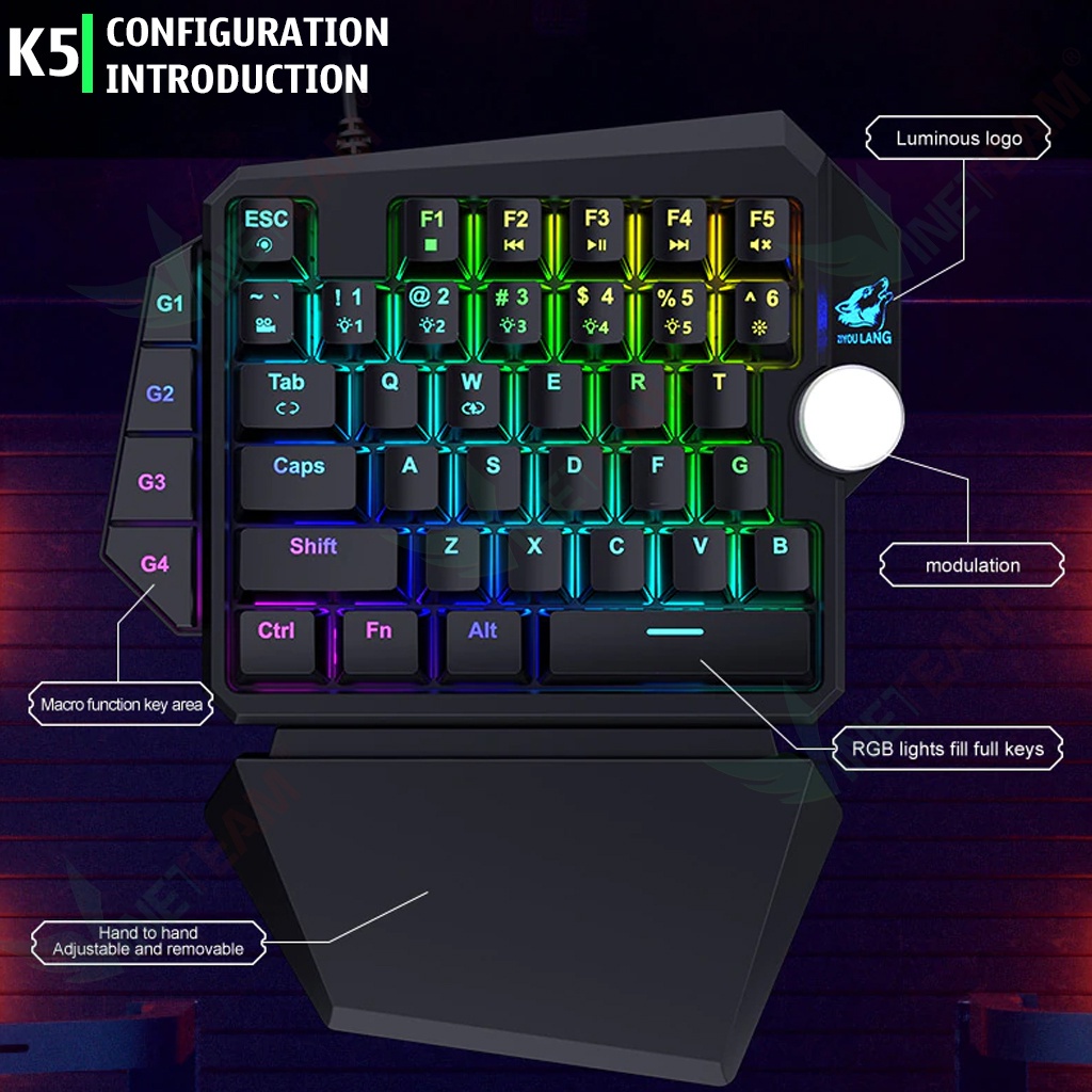 Giới thiệu Bàn Phím Cơ 1 tay ZIYOULANG K5 39 Phím Hỗ Trợ MACRO Blue Switch RGB Chơi Game Pubg Mobile, Rules, Free Fire -dc4691