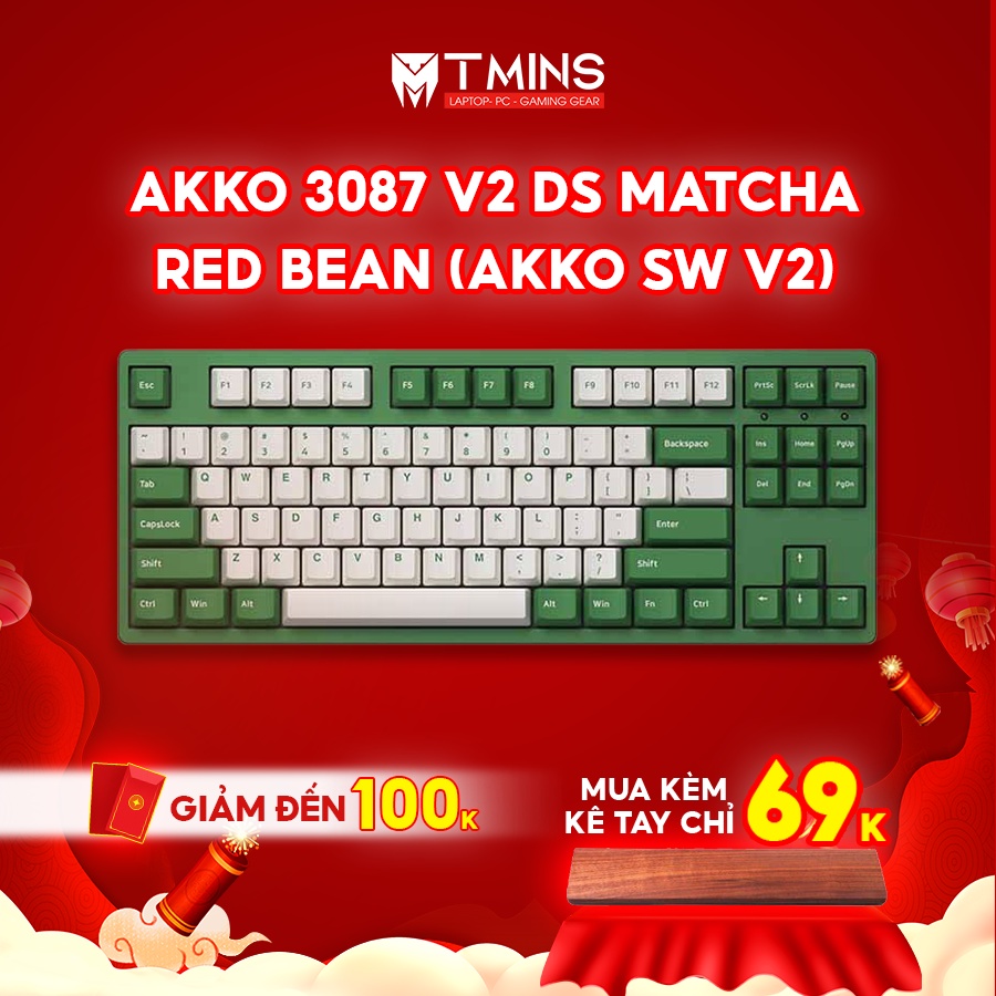 Bàn phím cơ AKKO 3087 v2 DS Matcha Red Bean✓ Bảo hành chính hãng 12 tháng