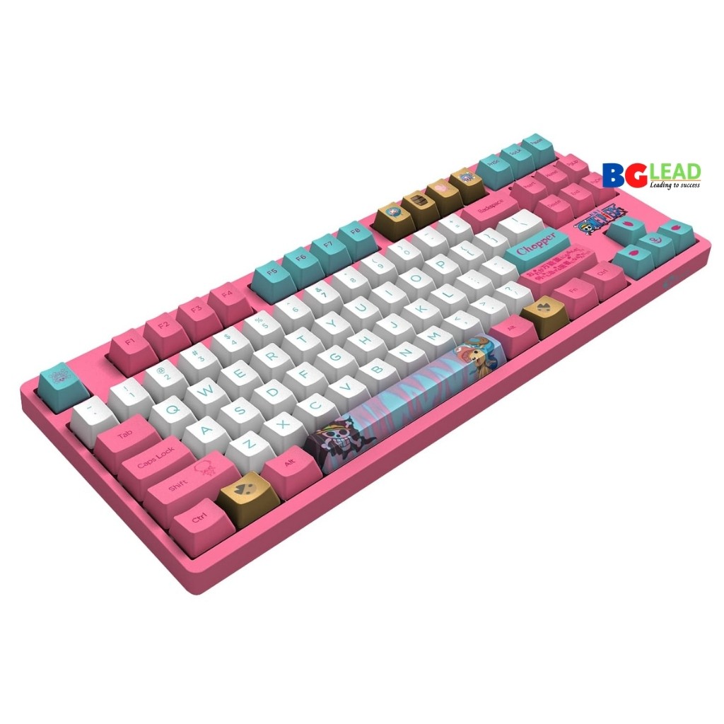 - Bàn phím lấy cảm hứng từ nhân vật Chopper trong bộ truyện tranh/anime One Piece với màu chủ đạo là hồng/trắng/xanh