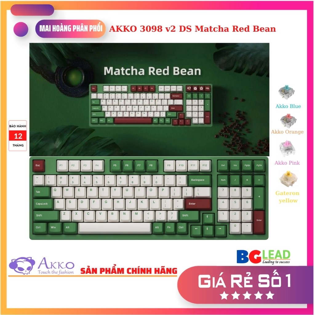 Máy tính & Laptop > Chuột & Bàn Phím > Bàn Phím Máy Tính || [Mã 273ELHA100K0 hoàn 7% đơn 500K] Bàn phím cơ AKKO 3098 DS Matcha Red Bean (Akko switch v2)Còn hàng