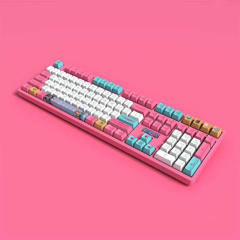 - Bàn phím lấy cảm hứng từ nhân vật Chopper trong bộ truyện tranh/anime One Piece với màu chủ đạo là hồng/trắng/xanh
