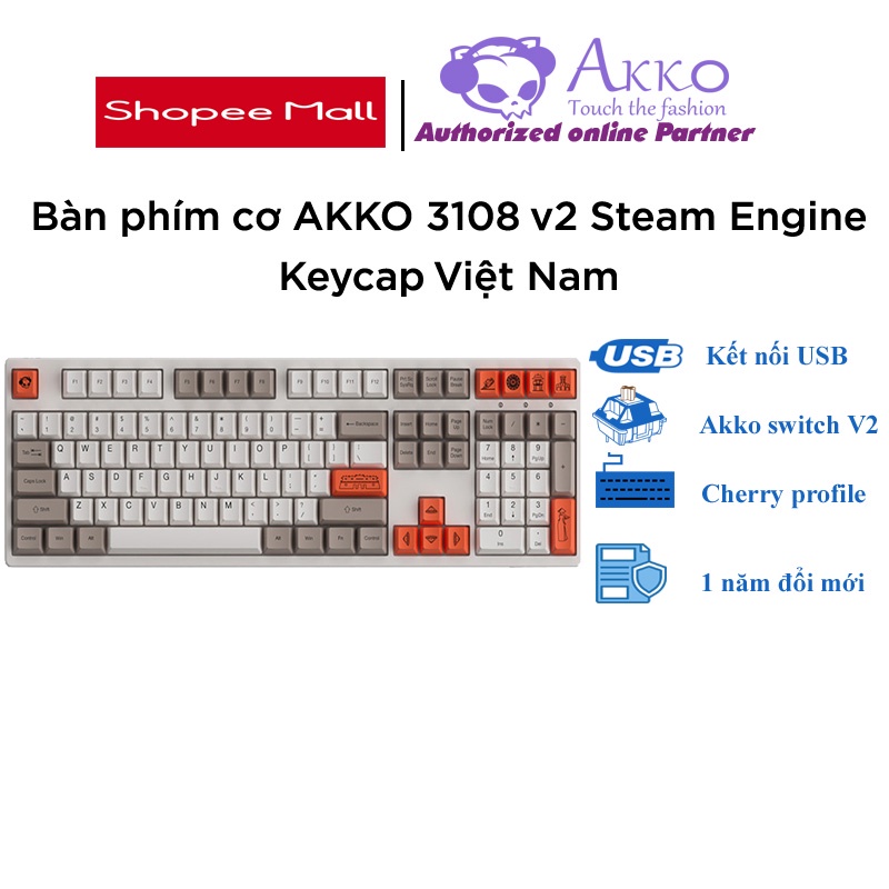 Máy tính & Laptop > Chuột & Bàn Phím > Bàn Phím Máy Tính || Bàn phím cơ AKKO 3108 v2 Steam Engine (Akko switch v2) - Cổng USBCòn hàng