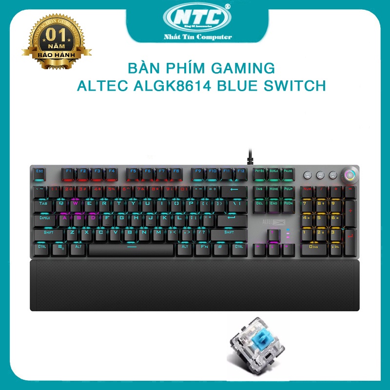 Máy tính & Laptop > Chuột & Bàn Phím > Bàn Phím Máy Tính || Bàn phím cơ Blue Switch ALTEC LANSING ALGK8614 tích hợp 20 kiểu led và 3 cụm led game - kèm đế kê tay (Đen)Còn hàng