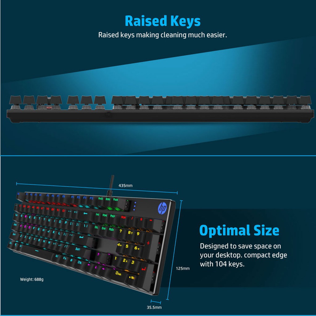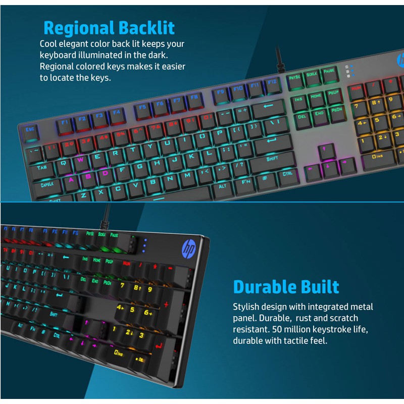 Máy tính & Laptop > Chuột & Bàn Phím > Bàn Phím Máy Tính || Bàn phím cơ blue switch HP GK400F cực chuẩn - hơn 20 chế độ led tùy chỉnh (đen bạc)Còn hàng