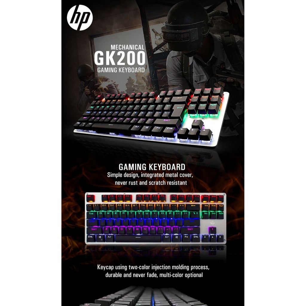 Bàn phím cơ blue switch HP GK200 loại 87 phím led rainbow - hơn 20 chế độ tùy chỉnh (nhiều màu)
