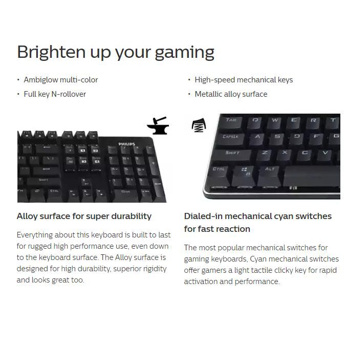 Máy tính & Laptop > Chuột & Bàn Phím > Bàn Phím Máy Tính || Bàn phím cơ Brown Switch PHILIPS SPK8404GS tích hợp led Rainbow - hơn 20 kiểu led khác nhau (Đen)Còn hàng