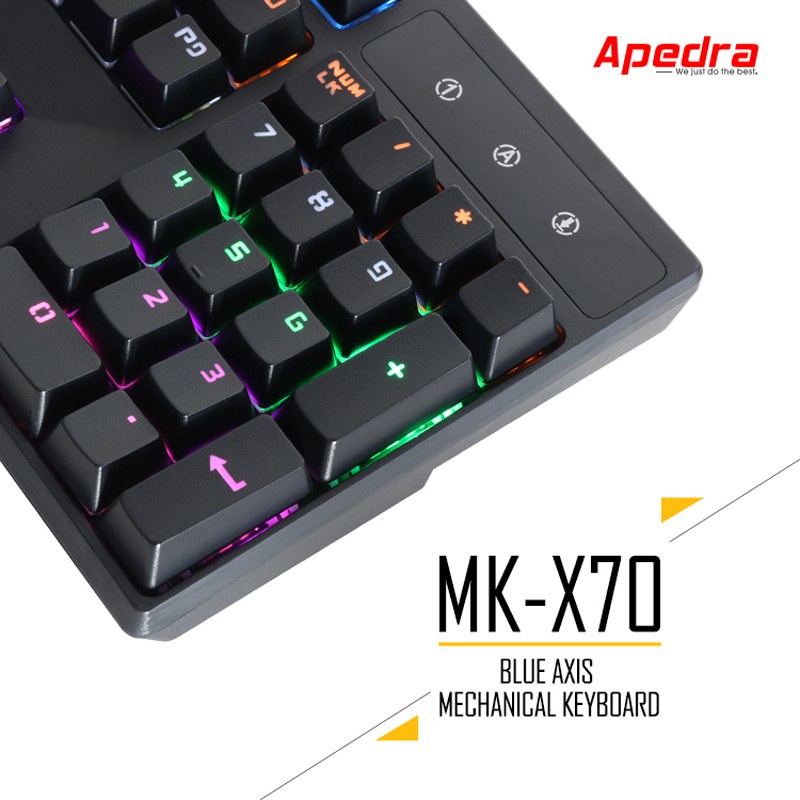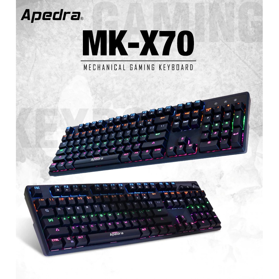 Máy tính & Laptop > Chuột & Bàn Phím > Bàn Phím Máy Tính || BÀN PHÍM CƠ CHUYÊN GAME APEDRA MK- X70 - LED ĐỔI MÀU USB 104 phím led RGB nhiều chế độ Swith blue -dc3019Còn hàng