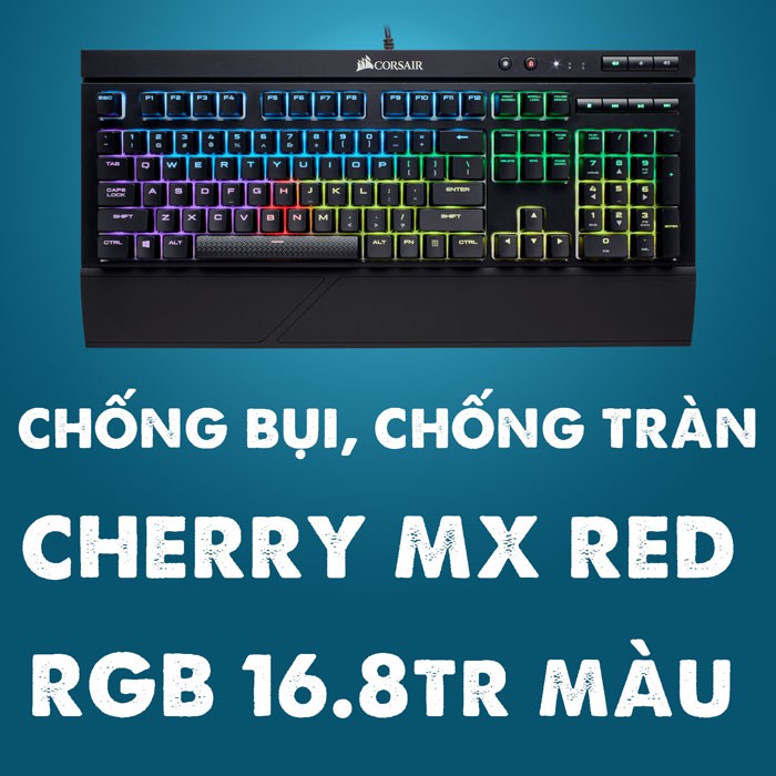 1. Corsair K68 RGB Red switch bàn phím cơ cao cấp, thiết kế hầm hố mạnh mẽ, có khả năng chống tràn nước, sử dụng hệ thống Led RGB 16.8 triệu màu cực đẹp và bàn kê tay tăng cường sự thoải mái khi sử dụng trong thời gian dài.