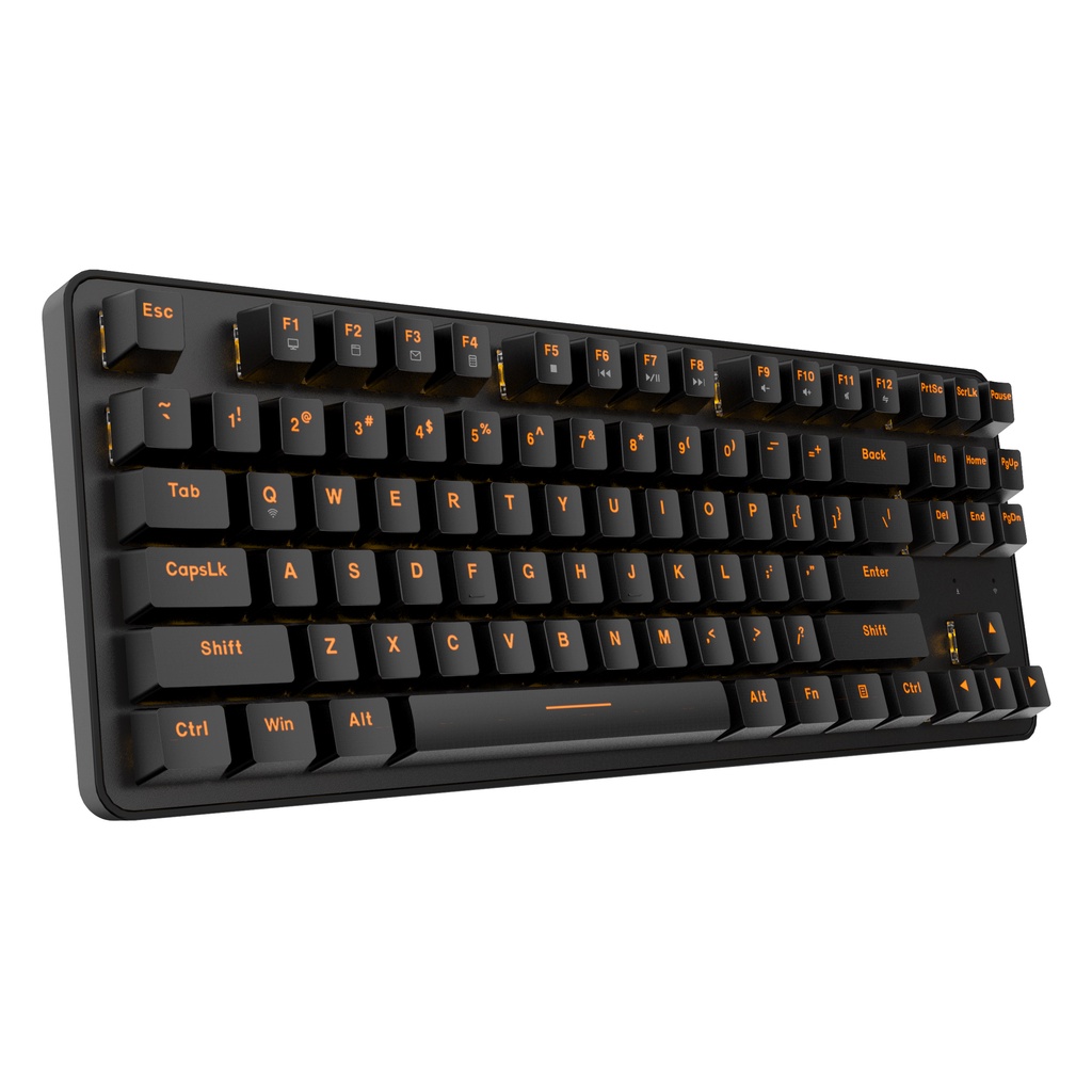 Để tăng độ bền cũng như cảm giác bấm tốt nhất có thể. DareU EK807G được lắp bộ keycap ABS Double shot rất chất lượng, keycap rất dày và bền bỉ. Ký tự keycap màu Orange đúng màu truyền thống của DareU. Bàn phím không có LED, vì vậy mà bộ keycap này cũng không xuyên led.