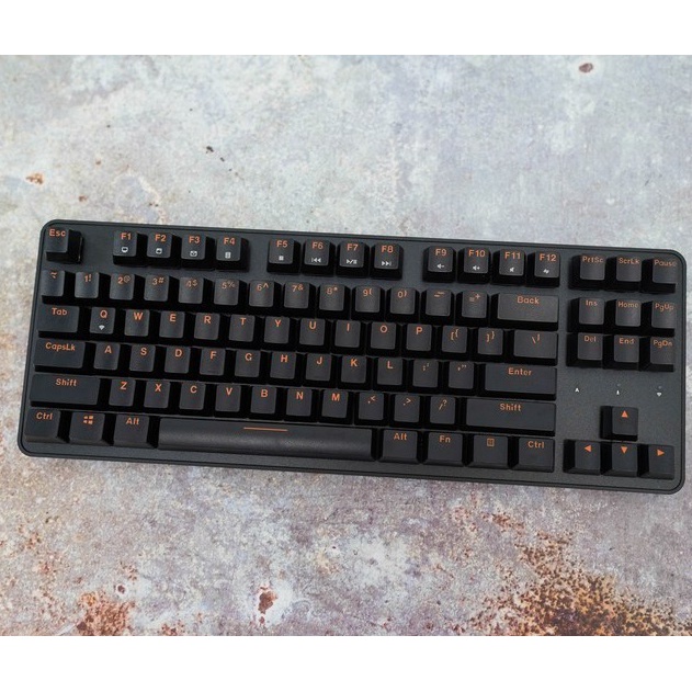 Để tăng độ bền cũng như cảm giác bấm tốt nhất có thể. DareU EK807G được lắp bộ keycap ABS Double shot rất chất lượng, keycap rất dày và bền bỉ. Ký tự keycap màu Orange đúng màu truyền thống của DareU. Bàn phím không có LED, vì vậy mà bộ keycap này cũng không xuyên led.
