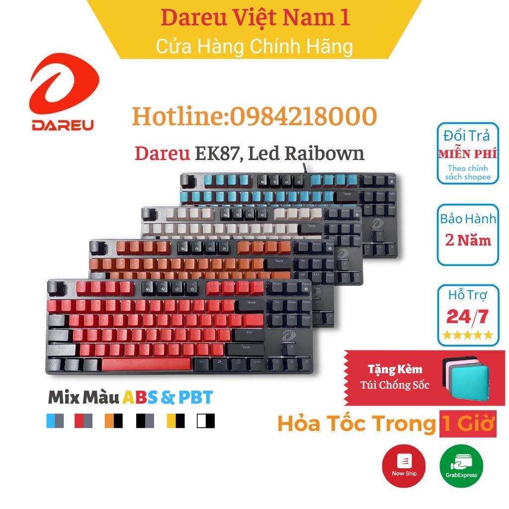 [Mã 44ELSALE2 giảm 7% đơn 300K] Bàn phím cơ Dareu EK87- Đèn led raibown - Mix keycap - Bảo hành 24 tháng - Lỗi 1 đổi 1