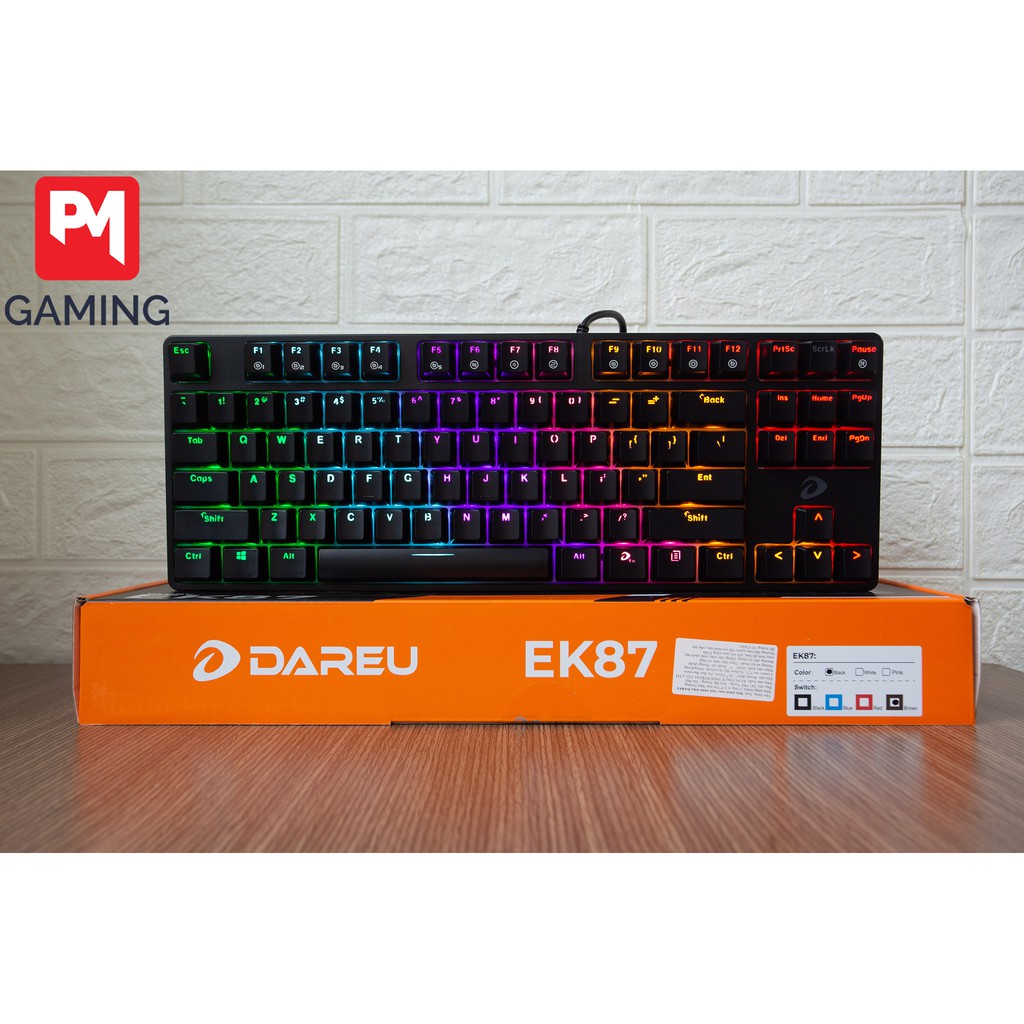 Dareu EK87 là bàn phím cơ chơi kiểu TKL nhỏ gọn, được build chắc chắn, switch bền bỉ, font chữ đẹp, led sáng.