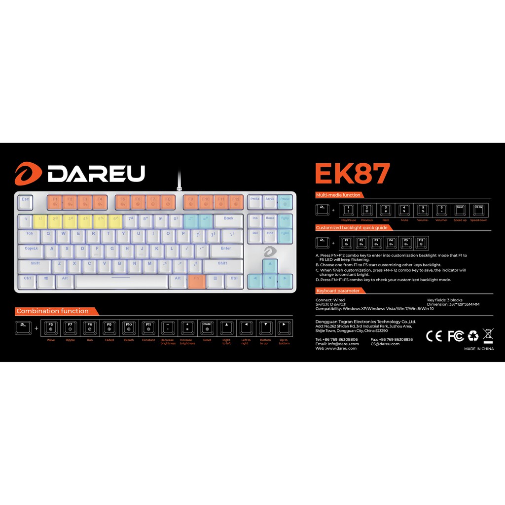 Máy tính & Laptop > Chuột & Bàn Phím > Bàn Phím Máy Tính || [Mã 273ELHA100K0 hoàn 7% đơn 500K] Bàn phím cơ Dareu EK87 Trắng White ( Blue / Brown / Red Switch )Còn hàng