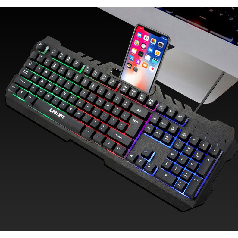 Combo Bàn Phím Có Dây Giả Cơ Gaming Cao Cấp T21 - Khung Kim Loại Sang Trọng, Chắc Chắn, Có Chỗ Kê Điện Thoại----------------------------------------------------------