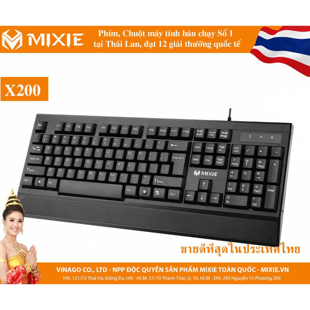 1. Đặc Điểm Bàn Phím Có Dây MIXIE X200:"MIXIE – Bàn phím, chuột máy tính chuyên dụng bán chạy số 01 tại Thái Lan với 12 giải thưởng chất lượng quốc tế. MIXIE – trải nghiệm trên từng phím bấm!