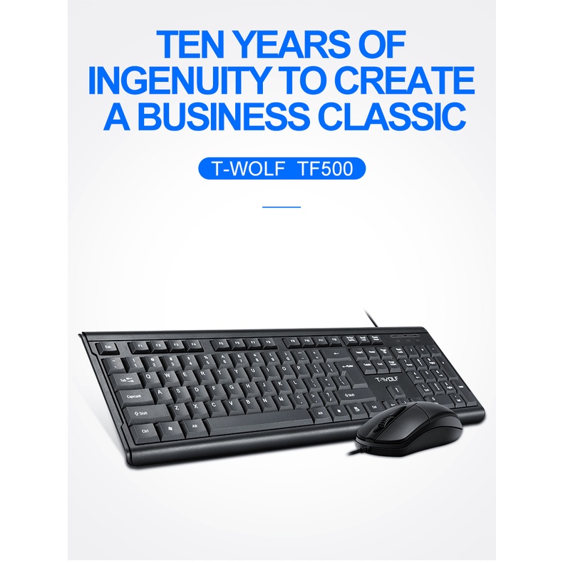 Bàn phím + Chuột có dây T-WOLF TF500 dùng cho học tập, làm việc, chơi game.