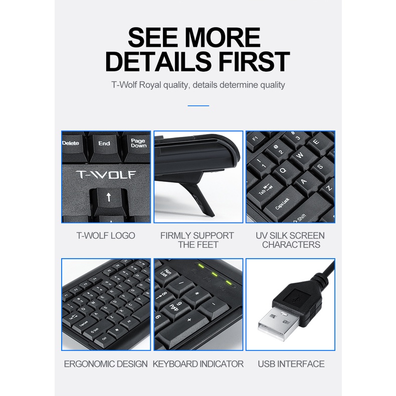 Thương hiệu: T-WOLF | Xem thêm các sản phẩm Phụ kiện phím chuột văn phòng của T-WOLFMô tả ngắn