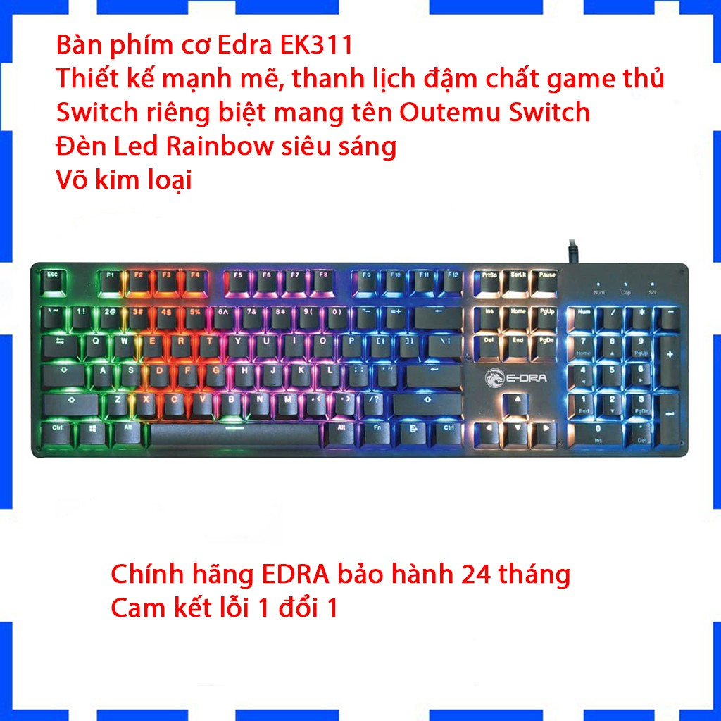 Máy tính & Laptop > Chuột & Bàn Phím > Bàn Phím Máy Tính || Bàn phím cơ E-DRA EK311 - Vỏ kim loại - Đèn led Rainbow siêu sáng - Bảo hành 24 thángCòn hàng