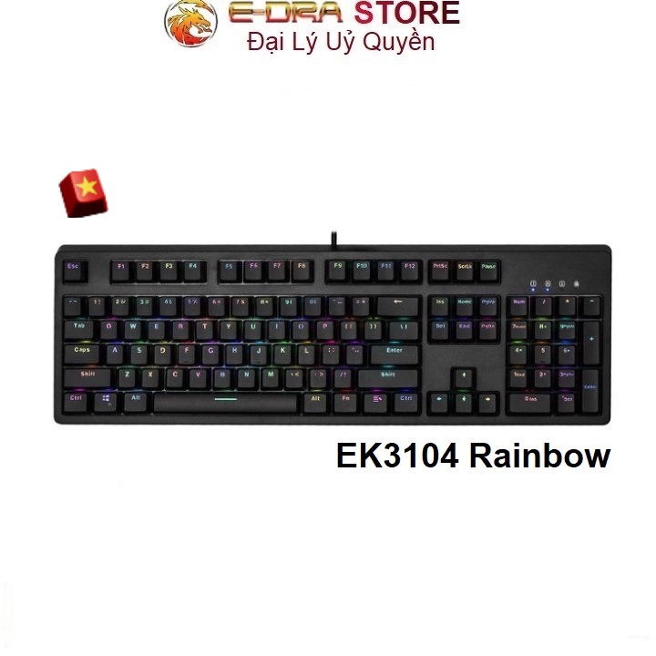 Máy tính & Laptop > Chuột & Bàn Phím > Bàn Phím Máy Tính || Bàn phím cơ Edra EK3104 Rainbow Huano Switch (Blue / Brown / Red) + Tặng key cờCòn hàng