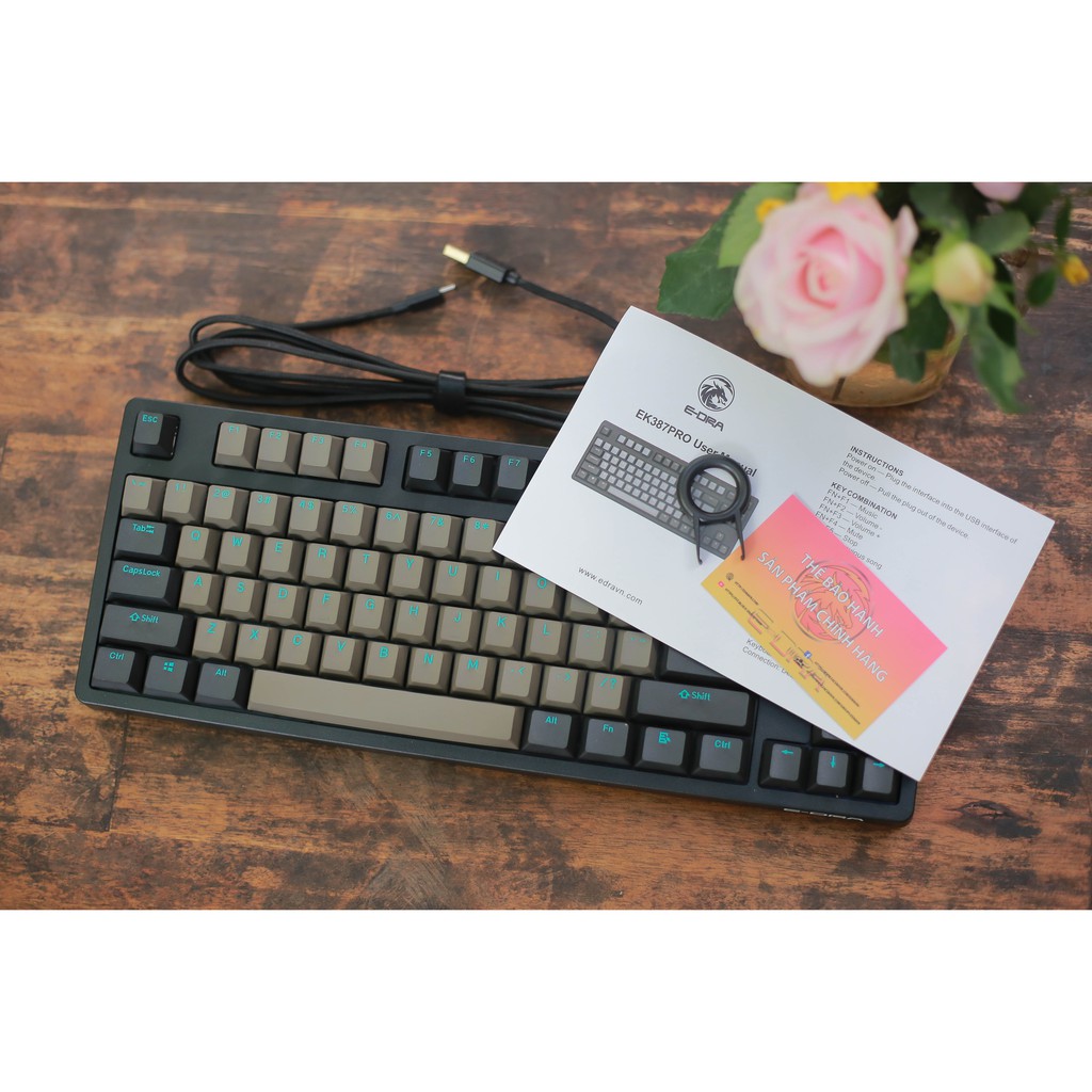 Giới thiệu Bàn phím cơ Edra EK387 Pro Gateron keycaps PBT Dye Sub Sky Dolch Philips chính - Phím cơ Edra EK387 Pro Gateron