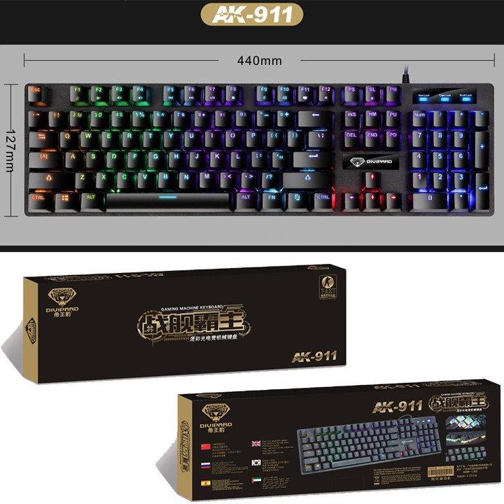 Bàn phím cơ chuyên game Divipard AK911 tích hợp Led 7 màu - chỉ tắt/bật led - không nhiều chế độ