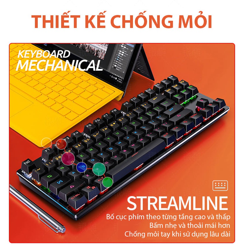 1. màu sắc thời trang và trẻ trung, tuyệt đẹp và Charming. 87 phím tiêu chuẩn, ký tự và ánh sáng mát mẻ giữa bảng.