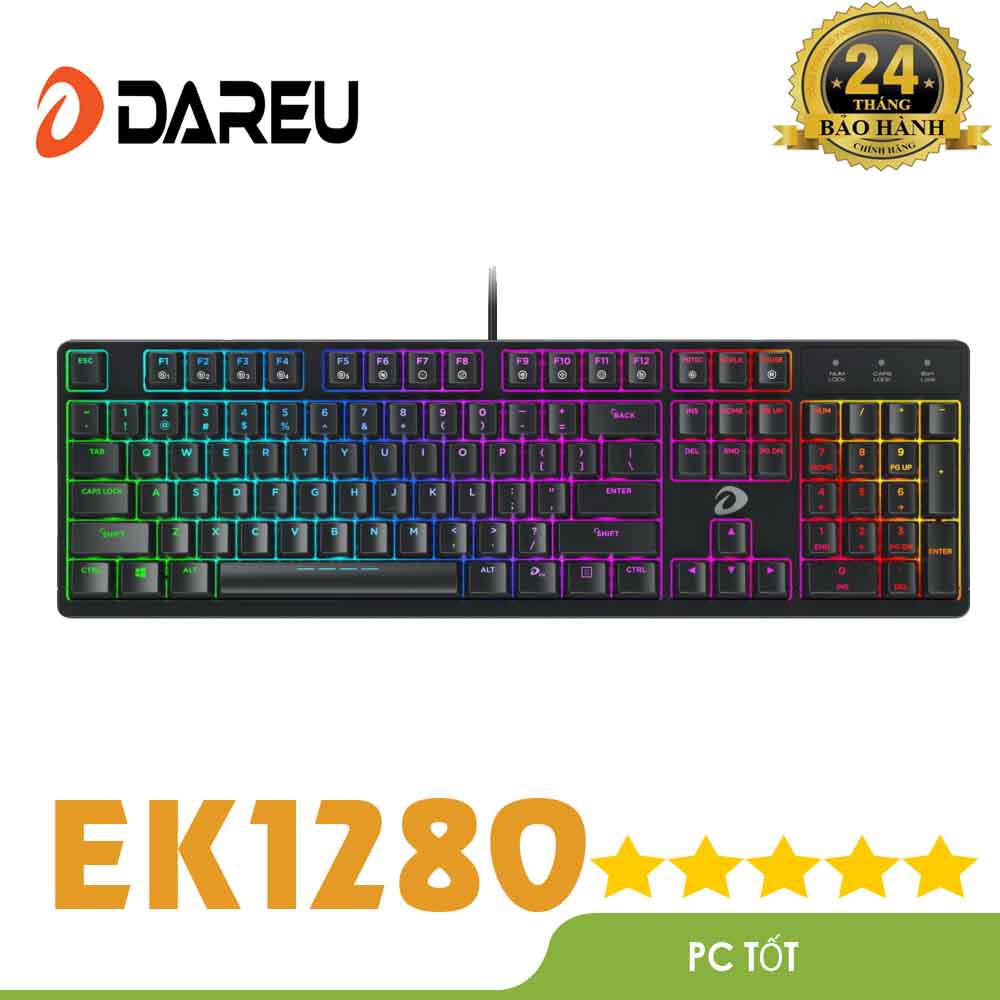 Máy tính & Laptop > Chuột & Bàn Phím > Bàn Phím Máy Tính || [Mã 273ELHA100K0 hoàn 7% đơn 500K] Bàn phím cơ Gaming DAREU DK1280/EK1280 104KEY (RGB, Blue/ Brown/ Red D switch)Còn hàng
