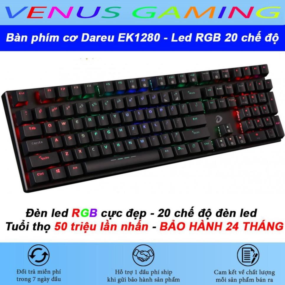 Bàn phím cơ Gaming Dareu EK1280 - Mã cũ DK1280 - Đèn led RGB 20 chế độ - Bảo hành 24 tháng - Cam kết lỗi 1 đổi 1