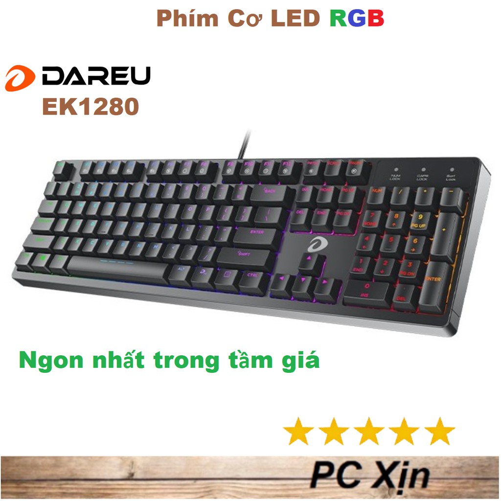 Máy tính & Laptop > Chuột & Bàn Phím > Bàn Phím Máy Tính || [Mã 273ELHA100K0 hoàn 7% đơn 500K] Bàn phím cơ Gaming DAREU EK1280 104KEY (RGB, Blue/ Brown/ Red D switch)Còn hàng