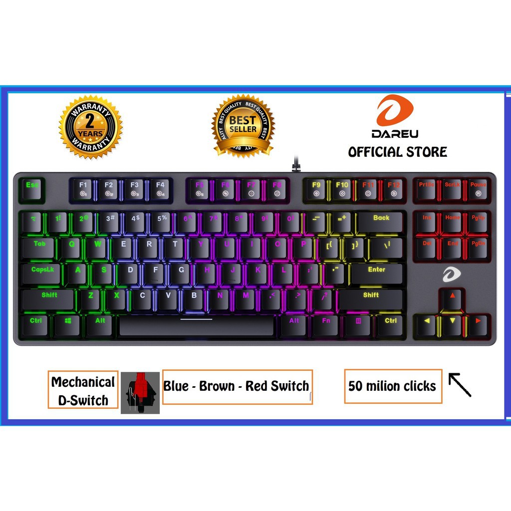 Máy tính & Laptop > Chuột & Bàn Phím > Bàn Phím Máy Tính || Bàn Phím Cơ Gaming DAREU EK87 Black (MULTI-LED, Blue/ Brown/ Red D switch) - Hàng Chính HãngCòn hàng