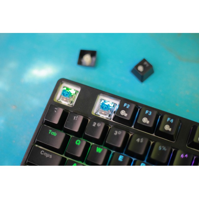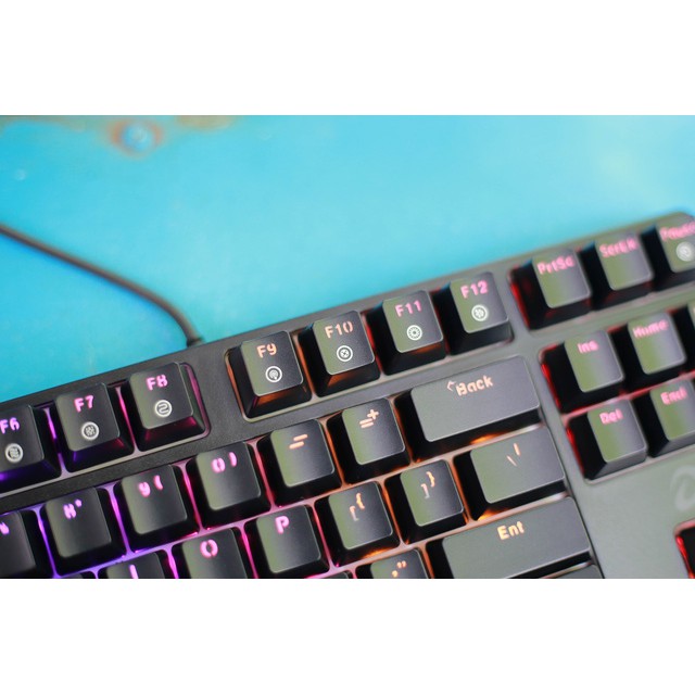 - Keycap theo chuẩn OEM nên rất dễ thay keycap khác. Lớp vỏ với mặt trên nhám, đế có khấc cao su để nâng lên hạ xuống bàn phím