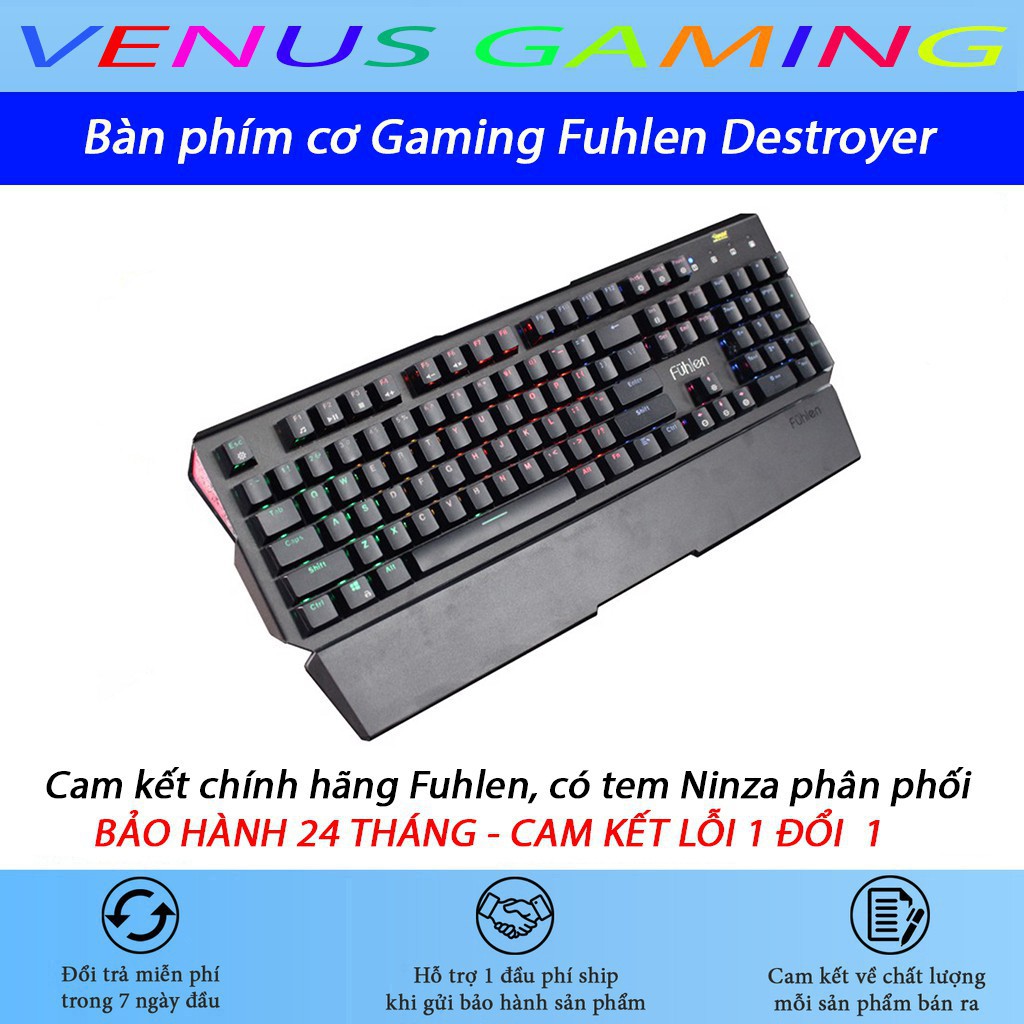 Bàn phím cơ Gaming Fuhlen Destroyer - Vỏ kim loại - Blue switch - Kê tay thào rời - Đèn led 7 màu - BH 24 tháng