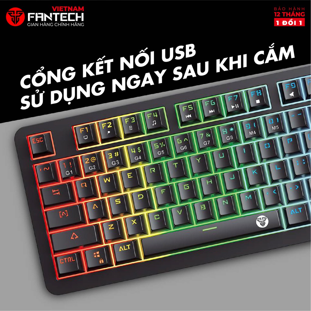 - Tính năng Anti Ghosting đặc biệt này của dòng bàn phím gaming Fantech mang đến trải nghiệm tốt nhất, với khả năng sử dụng đồng thời tất cả phím, đảm bảo mọi thông tin nhập vào không bị bỏ sót và yên tâm chiến đấu mà không sợ bị nhấn nhầm hoặc bất ngờ.