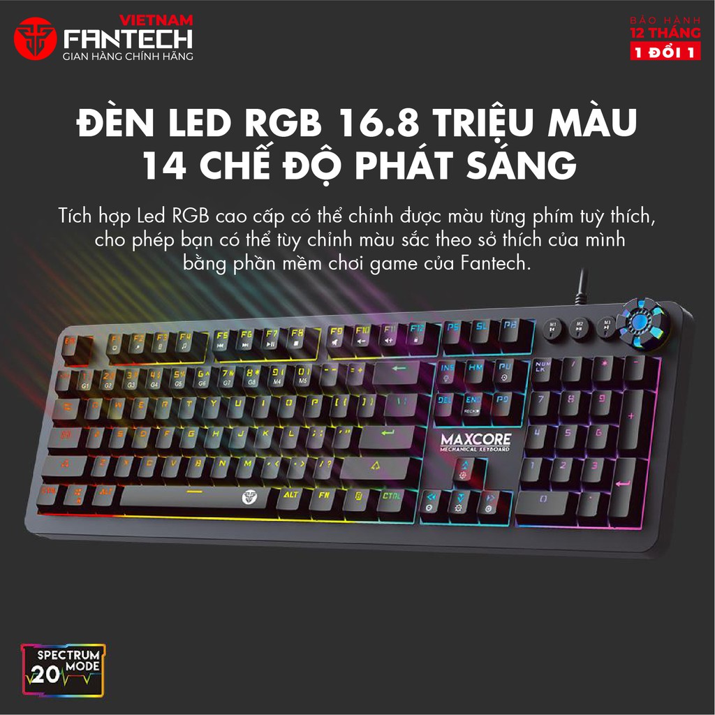 Bàn phím cơ Gaming FANTECH MK852 MAXCORE LED RGB Blue/ Brown Switch - Hãng phân phối chính thức Bảo hành 12 tháng 1 đổi 1 trong 15 ngàyTHỜI GIAN GIAO HÀNG SIÊU TỐC ĐỘ