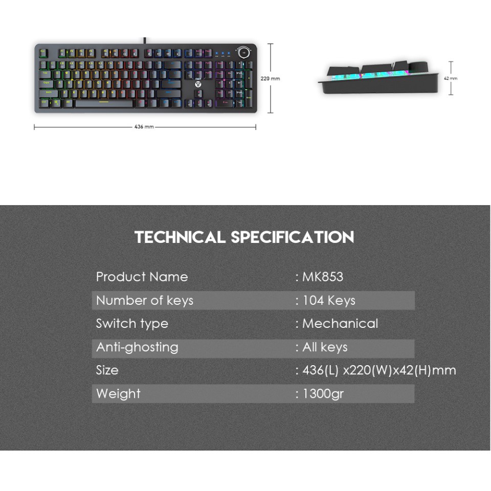 Máy tính & Laptop > Chuột & Bàn Phím > Bàn Phím Máy Tính || Bàn Phím Cơ Gaming Full-sized Có Dây Fantech MK853 MAXPOWER Outemu Blue/Red Switch LED RGB Gradient Full Anti GhostingCòn hàng