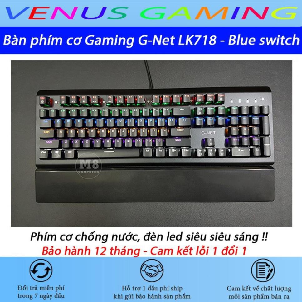 Bàn phím cơ Gaming G-Net LK718 - Blue switch - Chống nước tuyệt đối - Led 7 màu cực đẹp - BH 12 tháng