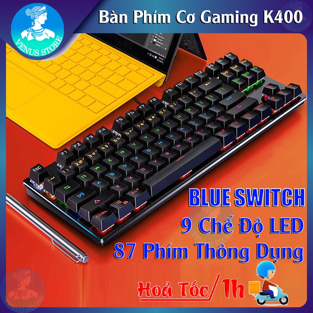 Bàn Phím Cơ Gaming K400 Full Tích Hợp LED Rainbow 9 Chế Độ- Bàn Phím Cơ 87 Phím Tiêu Chuẩn