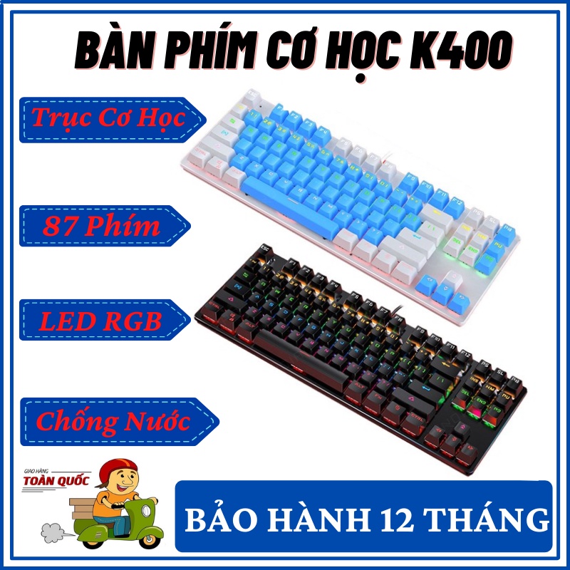 Bàn Phím Cơ Gaming K400 Full Đèn Led - Bàn Phím Máy Tính Game K400 Chống Nước Đèn LED 10 Chế Độ Nháy - Bảo Hành 12 Thang