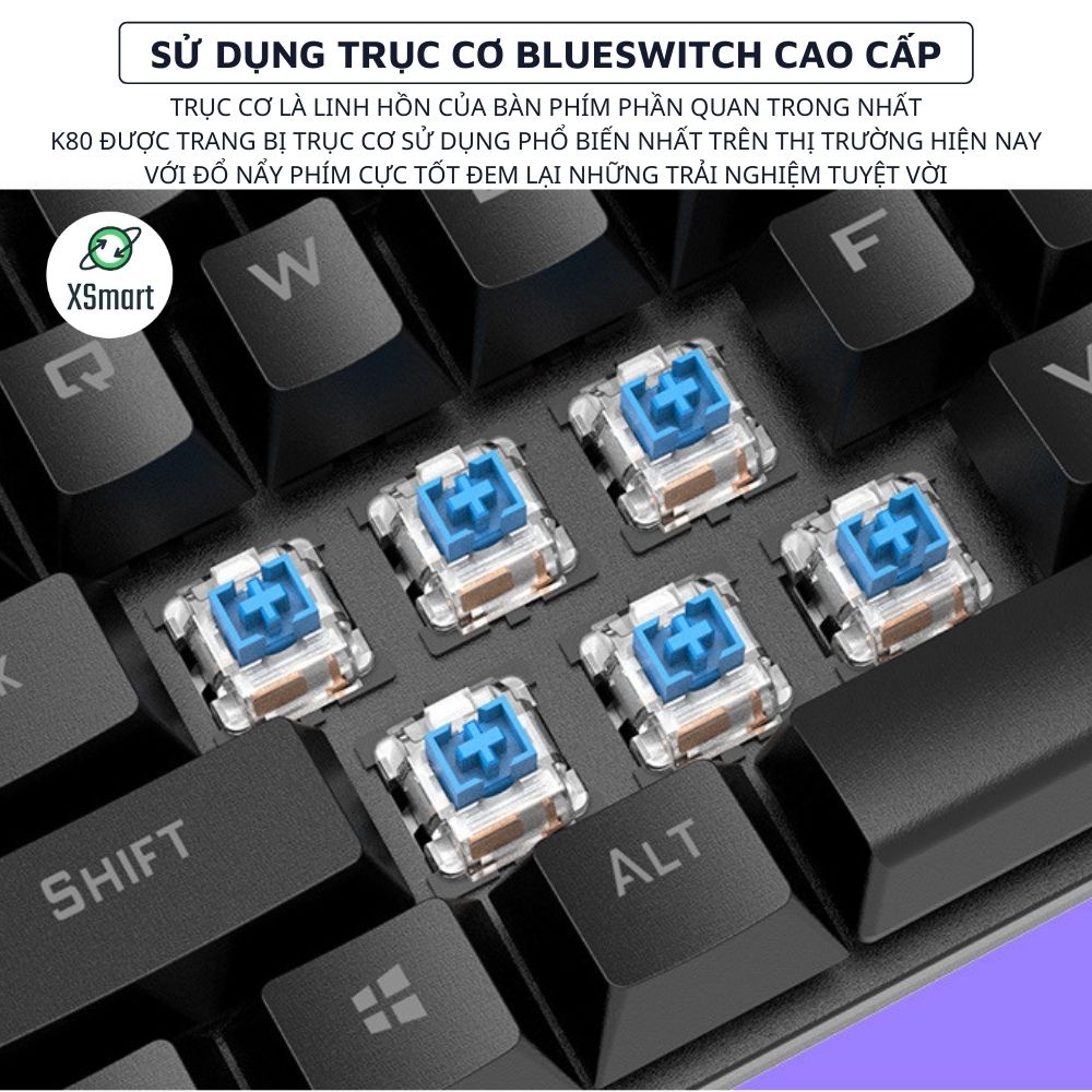Bàn Phím Cơ Gaming K80 LED RGB 20 Chế Độ Nháy Cực Đẹp, Phím CƠ Gõ Siêu Đã, Thiết Kế Nhỏ Gọn Dùng Cho Máy Tính, Laptop
