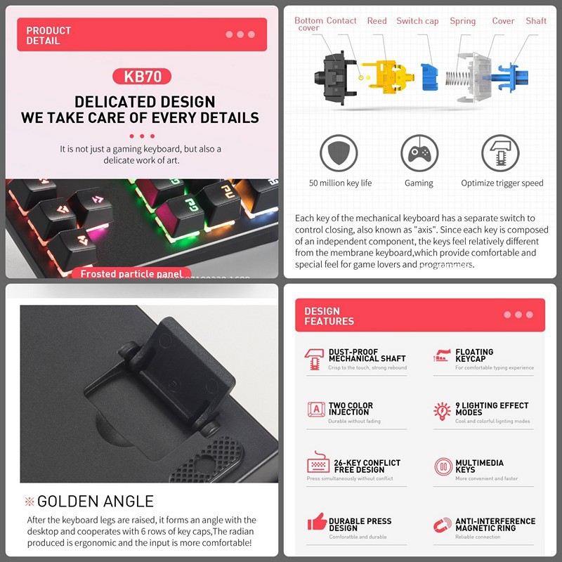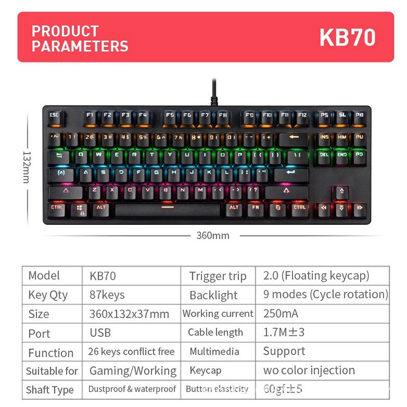 - Bàn Phím Cơ Gaming KB70- Blue Switch 87 Phím