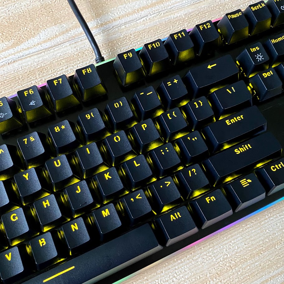 - Hệ LED Yellow rực rõ: Led viền + Led nền, Keycap lập trình tùy chỉnh nhiều hiệu ứng ánh sáng.
