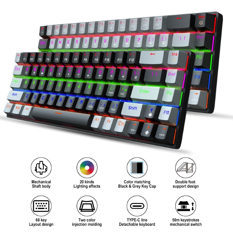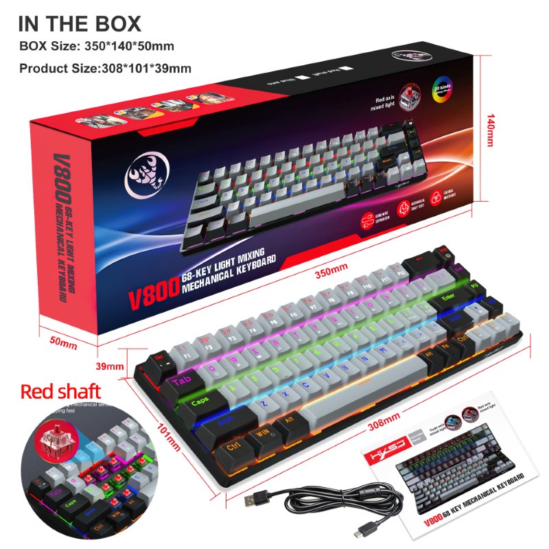 - Bàn Phím Cơ Gaming V800 mini chống ồn nhỏ gọn- Switch 68 Phím